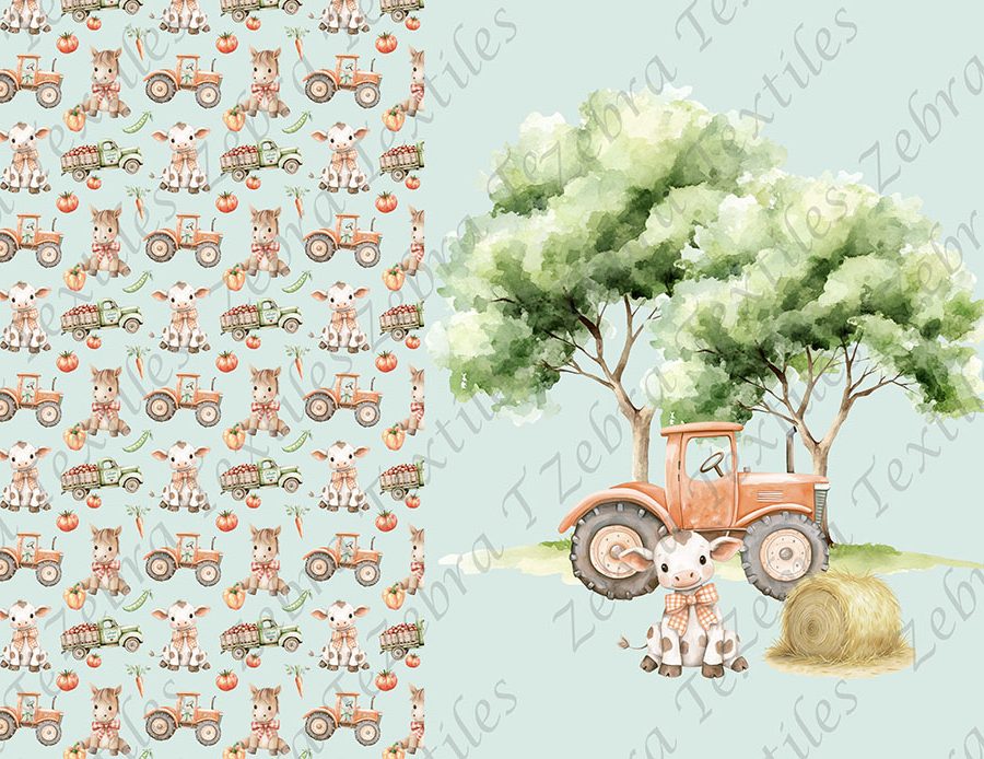 Vache agriculture fond sarcelle pâle Panneau doudou * Exclusif *