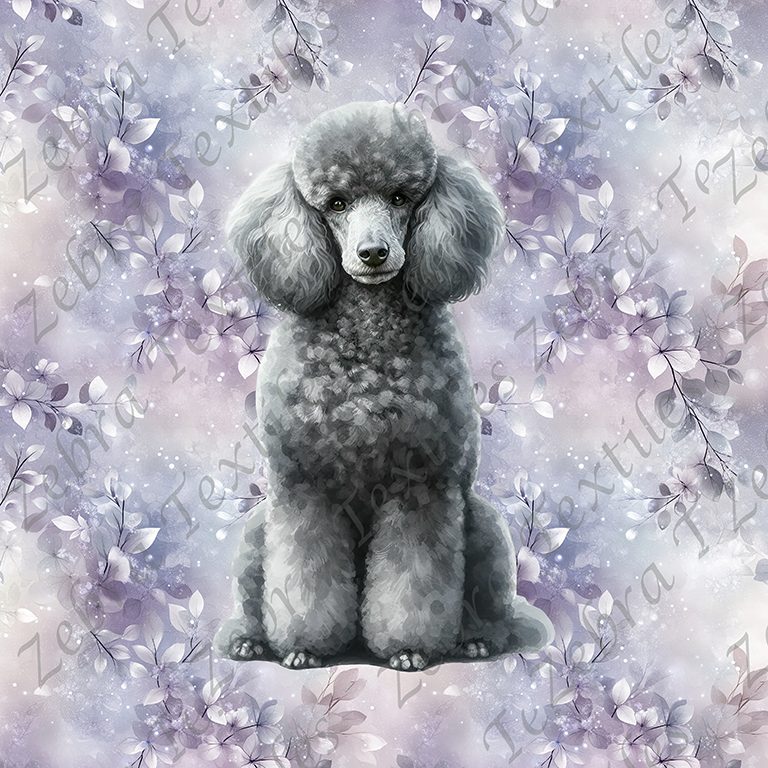 Caniche gris fond floral mauve Panneau sac * Exclusif *