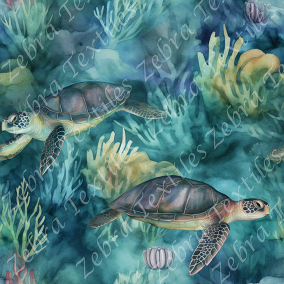 Méduse et tortue floral fond aqua * Exclusif *