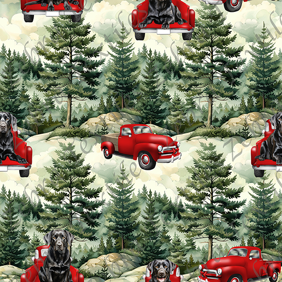Labrador brun 2 floral rouge Canevas * Exclusif *